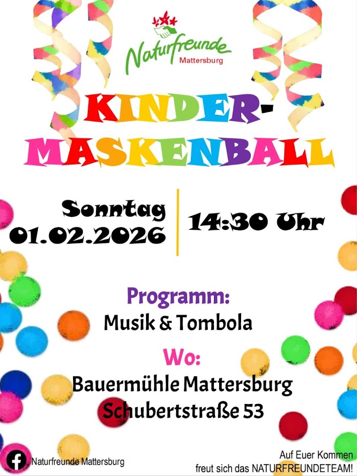 Die Naturfreunde Mattersburg laden auch heuer wieder zum bunten Kindermaskenball ein!