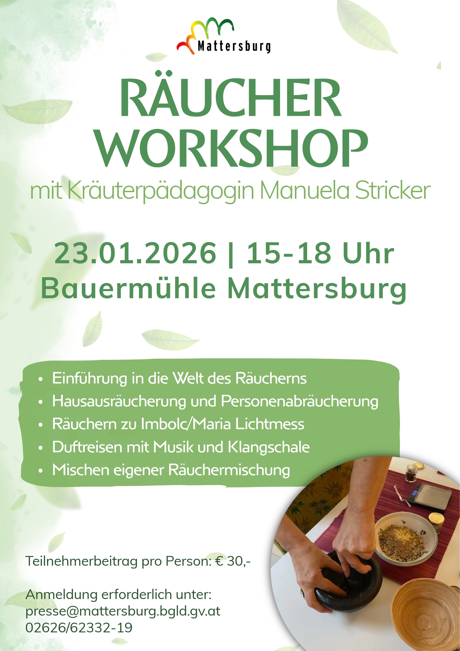 Teilnehmerbeitrag pro Person: € 30,-